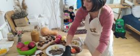 Гарбузові цукерки Надія готує так: “Гарбуз запікаю під фольгою чи відварюю. Якщо берете грушу чи яблуко, то трохи протушкуйте з корицею на пательні, додавши ложечку кокосової олії. Горіхи збиваю блендером (чи мелю в ступці) до муки чи пасти. Потім розтоплюю какао масло і додою туди мелені горіхи та пюре. Добре розмішую”.