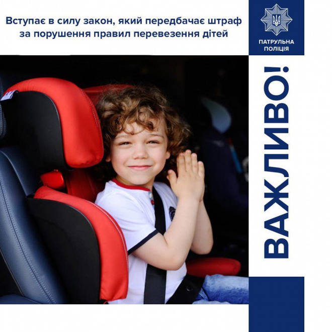 Порушення правил перевезення дітей тягне за собою накладення штрафу на водія в розмірі 30 неоподатковуваних мінімумів доходів громадян – 510 гривень.
