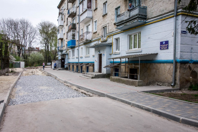 · у дворі на вул. Дружби,17, де облаштували щебеневу основу проїзної частини;