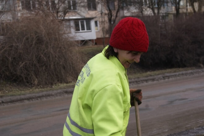-Щоранку прокидаюся о четвертій годині і якнайшвидше виходжу на роботу, бо маю велику ділянку – від перехрестя вулиць 15 Квітня та Київської до перехрестя Київської із вулицею Генерала Тарнавського. Цим тротуаром користується дуже багато людей, адже неподалік ринок, то ж роботи – непочатий край. Та я роботу свою дуже люблю, хоч вона фізично важка. Якщо порівняти із роботою в попередньому підприємстві (МШЕД) – це «небо і земля». Тоді нам вічно боргували ту копійчану зарплату, а зараз – тішуся, бо і інвентар є, і форма, і зарплата добра, і, отримуємо її вчасно.