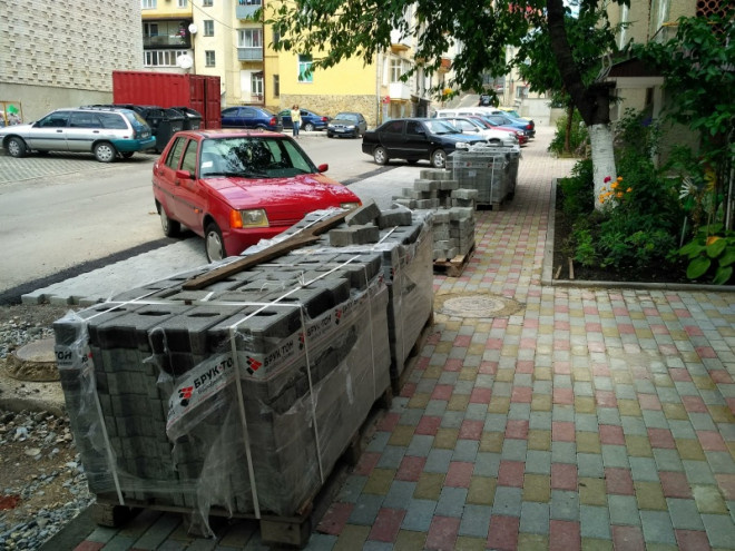 Напередодні було здійснено розбирання старого асфальтобетонного покриття, демонтаж бордюрів та влаштування нових бордюрів, щебеневої основи і облаштування пішохідних ділянок фігурними елементами мощення. У