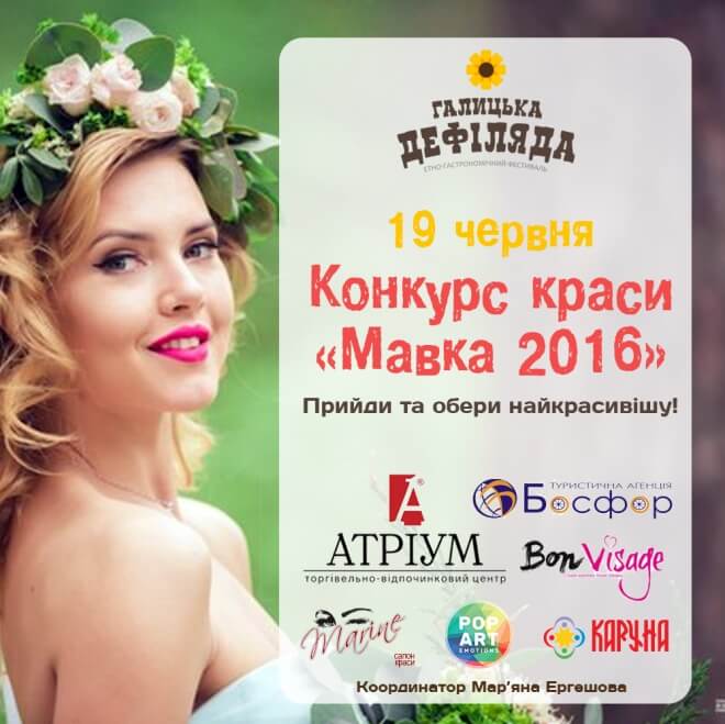 mavkaУ третій день фестивалю «Галицька дефіляда» – у неділю, 19 червня, у Тернополі оберуть найкрасивішу мавку – дівчину-народну красуню. Також серед номінацій будуть «Русалка 2016», а також «Народна улюблениця».