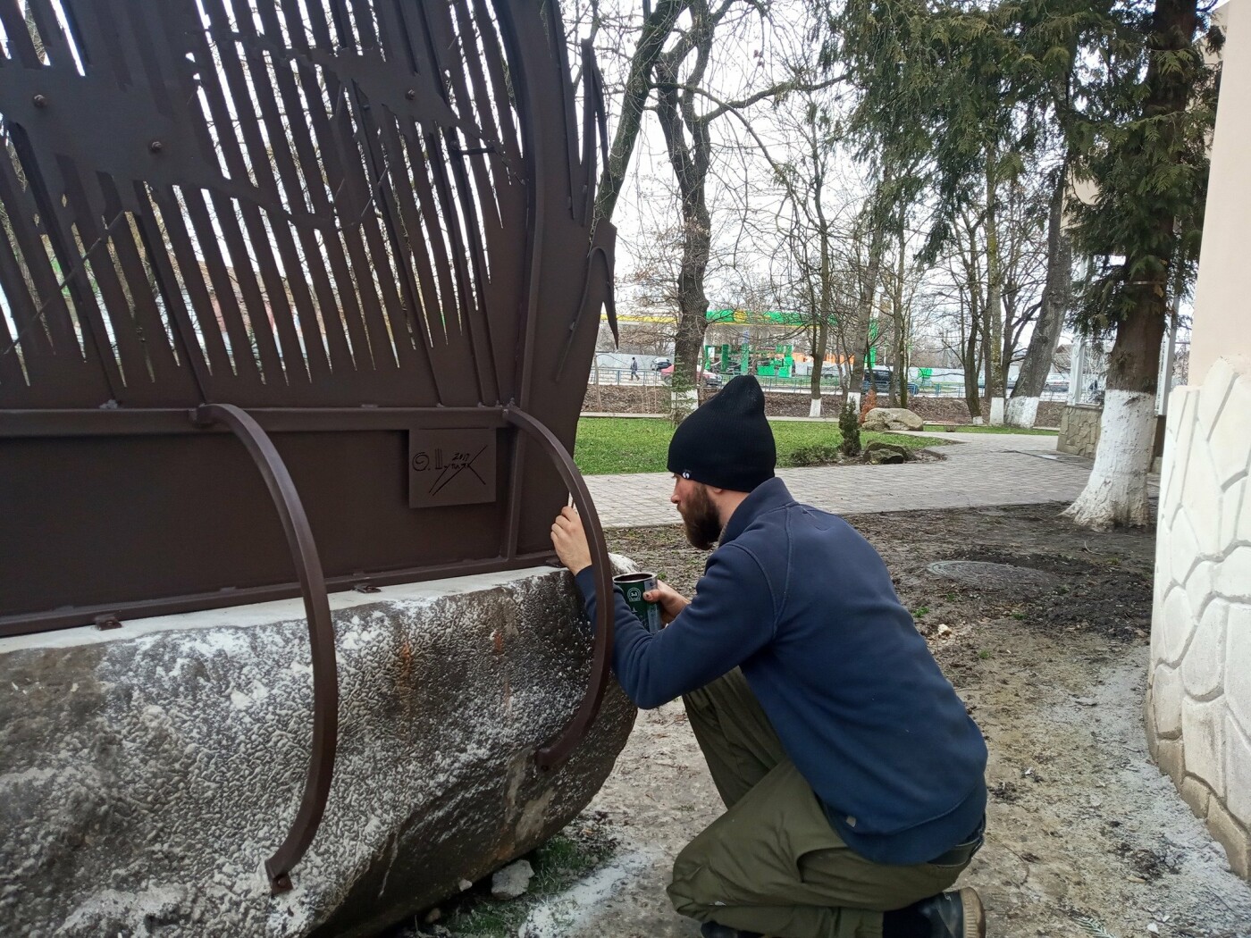 На відео видно як при русі, скульптура ніби то “оживає” і в даному випадку гуси махають крилами. Роботу виконали працівники зі Spark Бережани. “Гуси у рогозі” зробили з металу.