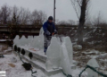 До роботи задіяли 50 мешканців села. Люди різали лід брилами і носили їх зі ставка до річки. Вага однієї такої брили 80 кг. Односельчани працювали над льодовими скульптурами чотири дні.