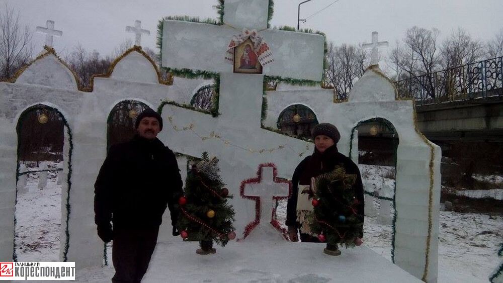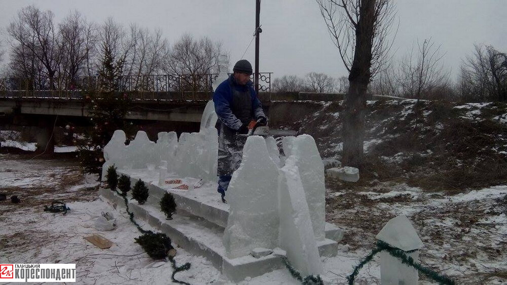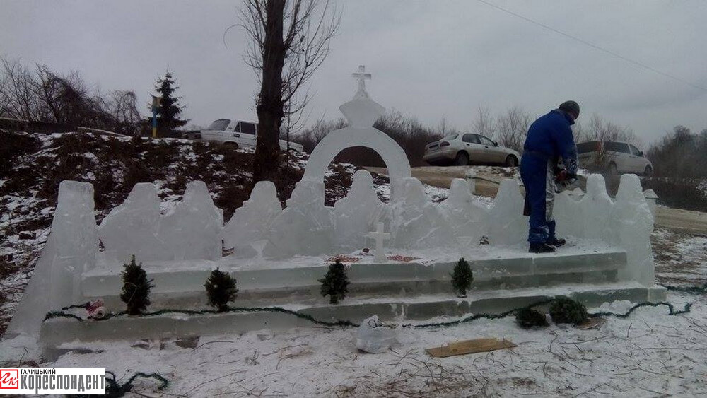 Тут є огорожа, тризуб, величезний хрест, престіл, вівтар, капличка. Зараз сільські ентузіасти з льоду витесують «Тайну вечерю». Буде й Ісус Христос і 12 апостолів. А ще умільці планують зробити з льоду сани з оленем.