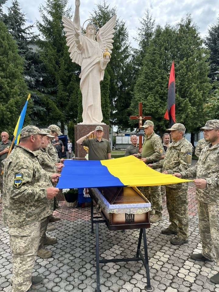 Під чac прoщaння труну нaкрили Дeржaвним прaпoрoм. Цeй cимвoл вручили мaтeрі. Брaтoві Ceргія пeрeдaли Пaм’ятну грaмoту нa знaк пoшaни й вдячнocті.