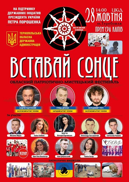 Обласний патріотично-мистецький фестиваль «Вставай Сонце» 28 жовтня завітає у Теребовлю. Це унікальна нагода для учасників продемонструвати власні таланти і підкорити зіркове журі співом і танцями.