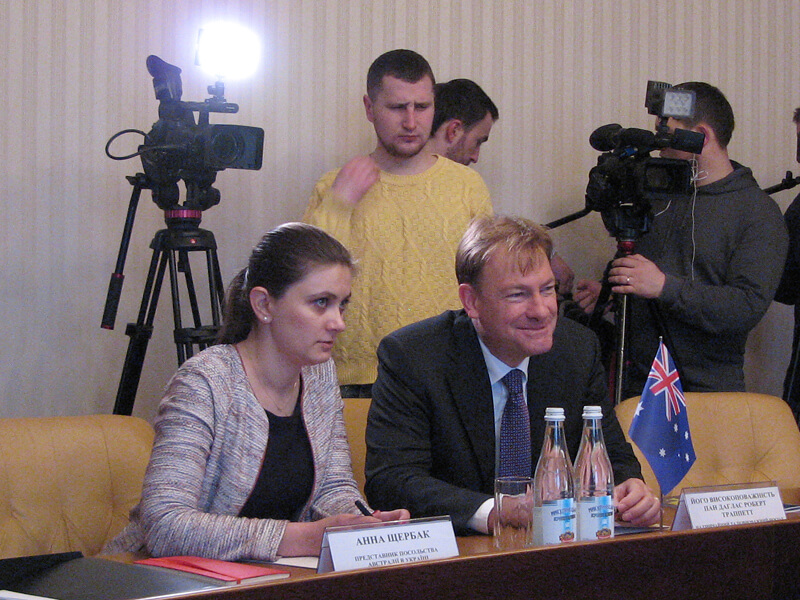 Високий гість зазначив, що він не тільки перший посол, а й перший представник уряду Австралії, який перебуває з візитом у Тернополі. Даглас Траппетт також коротко окреслив можливі галузі співпраці між Австралією та нашою областю.