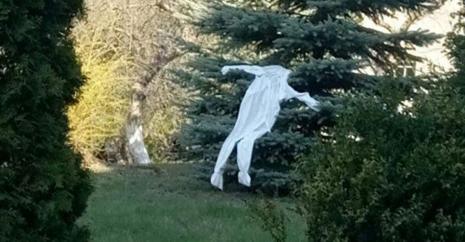Захисні костюми медики сушать на ялинках, щоб знезаразити.