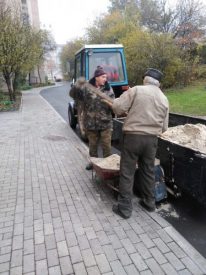 Працівники приступили до розвезення піску на прибудинкові території, які обслуговуєть підприємства, щоб при виникненні ожеледиці чи з початком снігових опадів, двірники або й мешканці могли оперативно здійснити посипання тротуарів та виходів із під’їздів. Протягом тижня також комунальники прибирали опале листя на тих ділянках, не була необхідність.