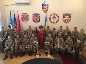 Військовий оркестр 44-ї окремої артилерійської бригади виступив з різдвяним концертом біля новорічної ялинки в центрі Тернополя.На сцені Файного зимового містечка, військовослужбовці – музиканти виконали чимало відомих колядок, «Во Вифлеємі», «Бог Предвічний», «Бог ся рождає», «Нова радість стала» та інші.