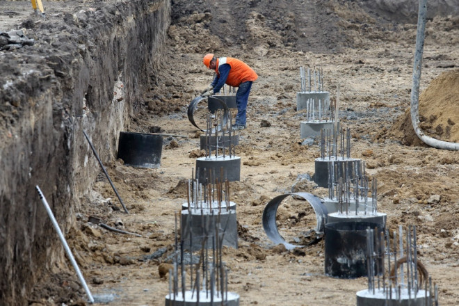 Наразі працівники підрядної організації влаштовують тут пальовий фундамент сучасним ін’єкційним способом, який служитиме основою майбутньої споруди.