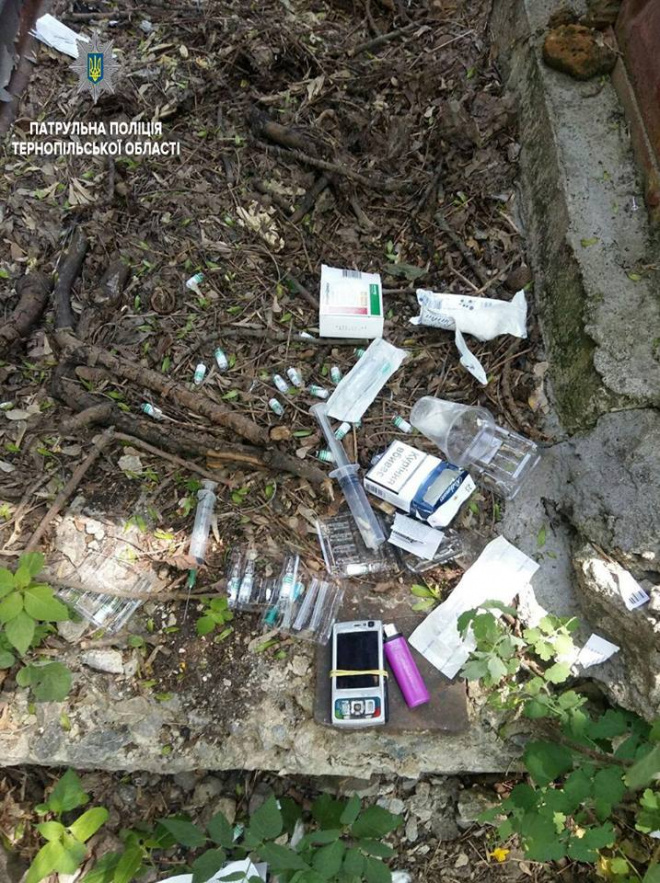 Патрульні виявили невідому особу на вказаному місці, довкола нього валялися шприци, з ймовірно наркотичними речовинами, та упаковки від ліків, що містять наркотичні речовини.