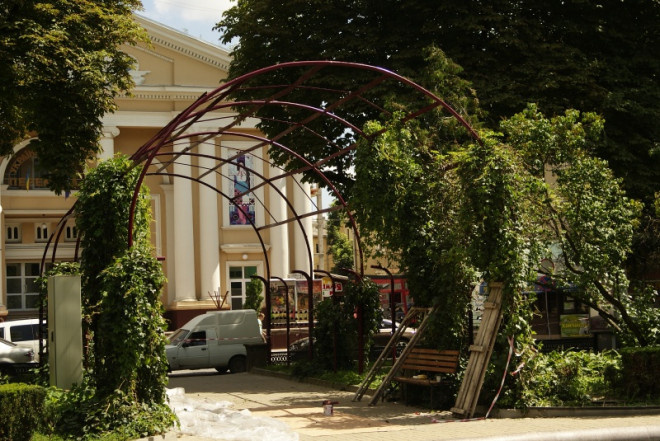 Арки поблизу “Перемоги” у центрі Тернополя фарбують вперше за всі роки їх існування у цьому місці.