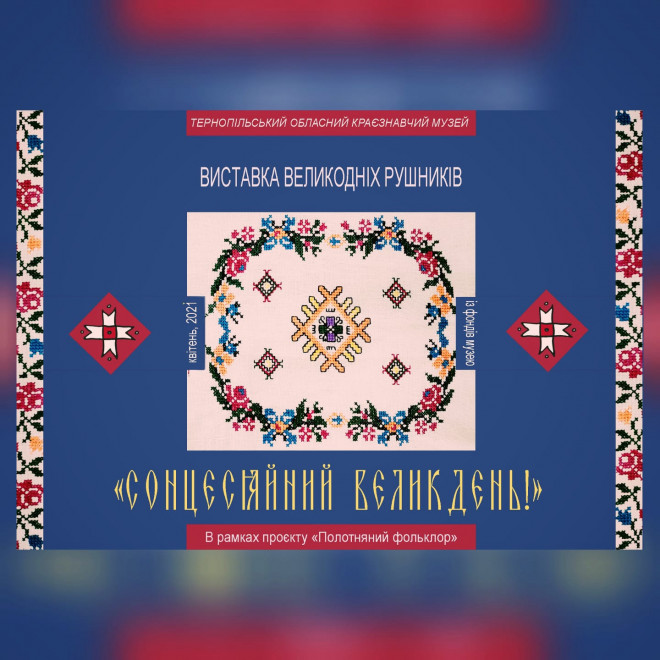 18 великодніх рушників з різних міст і сіл Тернопільської області, виготовлені у ХХ ст., можна оглянути у новій експозиції музею. Виставка буде функціонувати до 8-го травня.
