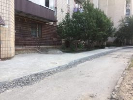 Тут проводять підготовчі роботи, а  також проводять демонтаж старого асфальтобетонного покриття проїзду та бордюрів.
