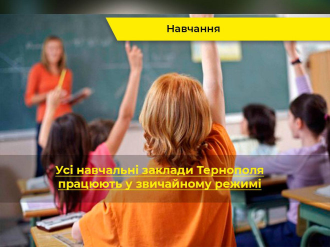 Школи в області закривають до 7 березня. Відповідне рішення прийняли у зв’язку із різким погіршенням погодних умов та пониженням температури по всій Україні. Тим часом тернопільські школи працюватимуть у звичайному режимі.– Управління освіти та науки інформує, що усі навчальні заклади Тернополя (дитячі садки, школи, позашкільні навчальні заклади та ін.) працюють у звичайному режимі. Відтак, завтра, у суботу, 3 березня, всі тернопільські школярі будуть навчатися, оскільки триває відпрацювання за 9 березня, яке буде вихідним, – зазначили у міській раді.