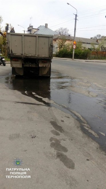 Патрульні поліцейські помітили автомобіль КамАЗ, який під час руху забруднив проїжджу частину на вулиці Бродівській у Тернополі.
