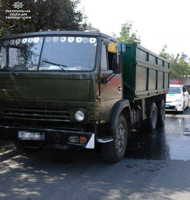 Тернопільські патрульні склали протоколи на двох водіїв вантажівок, які забруднювали проїжджу частину на вулиці Наливайка.