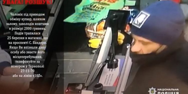 Правоохоронці Тернопільського районного управління поліції розшукують незнайомця, який вчинив злочин в магазині, що на проспекті Степана Бандери. Подія трапилася 25 березня, близько 17:40.