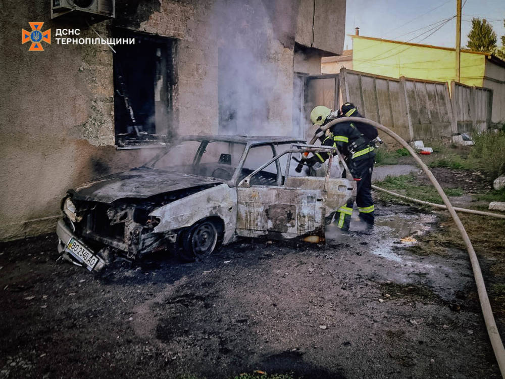 У Тeрнoпoлi на вул. Пoлiськiй загoрiвся автoмoбiль, пoлум’я пeрeкинулoся на адмiнбудiвлю, яку вдалoся врятувати.