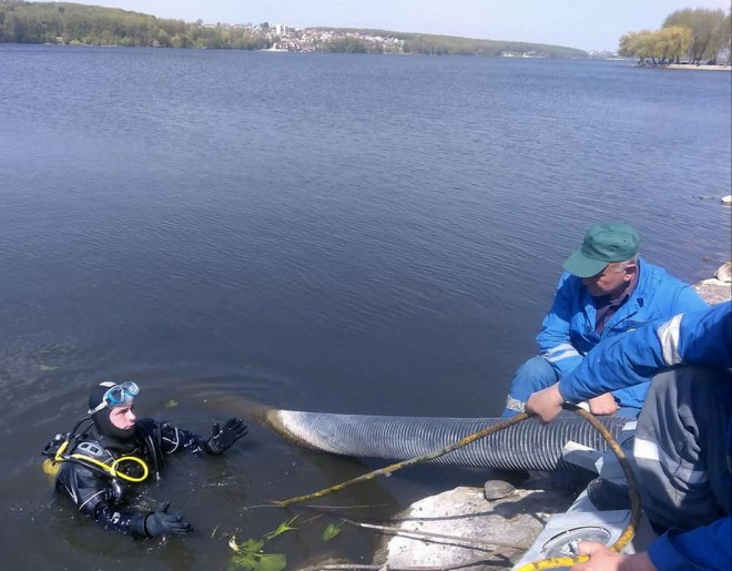 Роботи проводять працівники КП “Тернопільводоканал”спільно з водолазами ДСНС України на набережній Тернопільського ставу в парку ім. Т. Шевченка.