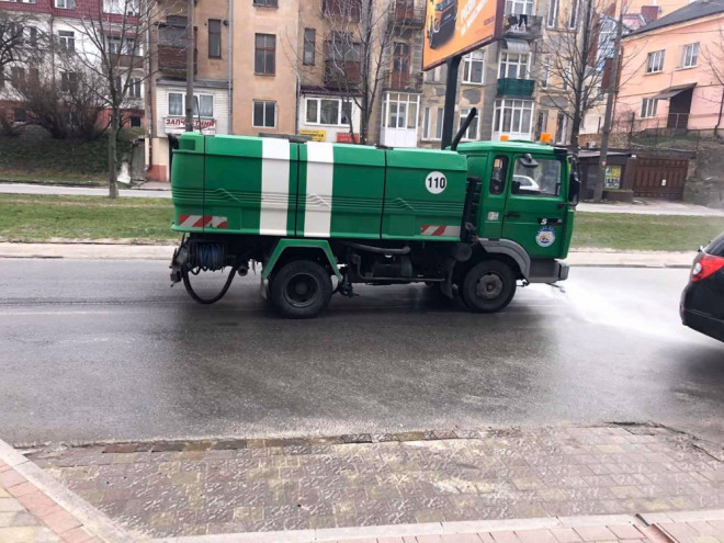 Відтепер, дезінфекція доріг та тротуарів відбувається з додаванням до води дезінфікуючого засобу «Неохлор». Обробка ведеться у місцях можливого найбільшого скупчення людей, на перехресті доріг, пішохідних переходах.