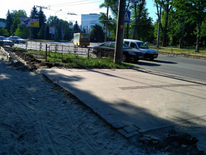 Розпочався капітальний ремонт ділянки тротуару на проспекті Злуки поблизу “Обленерго”. Ту працівники підрядної організації здійснили підготовчі роботи та встановили нові бордюри. Роботи тривають.