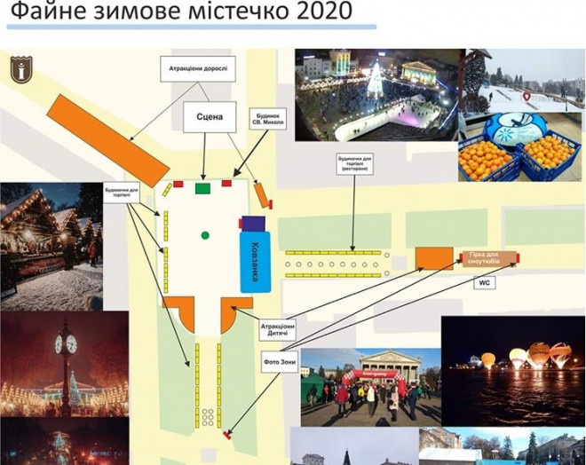 Зимове містечко у цьому році зазнає певних змін. Зокрема, на Театральному майдані та у сквері Чорновола розташовуватимуться: ковзанка, гірка для катання на сноутюбах, Резиденція Св. Миколая, сцена, будиночки зі святковою атрибутикою, фотозони та різноманітні атракціони.