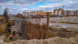 Працівники підрядної організації проводять демонтаж старих прольотів південної частини шляхопроводу. Також триває спорудження підпірних стін для майбутнього облаштування дворівневої автомобільної розв’язки.