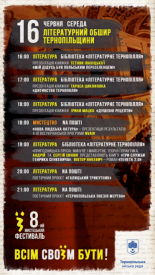 У  рамках заходу місто завітають відомі літератори, музиканти та митці зі всієї України і зарубіжжя. Впродовж п’яти днів на поціновувачів сучасного українського мистецтва очікує насичена програма заходів відповідно до трьох сцен: музичної, літературної та кіно- театральної. Завітають і відомі сучасні літератори: Юрій Андрухович, брати Капранови, Юрій Іздрик, Андрій Любка, Тарас Прохасько, Галина Крук, Мар’яна Савка, Дара Корній, Дмитро Лазуткін, Марк Лівін, Олександр Ірванець та ще понад 25 інших відомих письменників.