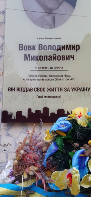 У соціальній мережі з’явився допис із закликом допомогти розшукати осіб, які причетних до розмалювання пам’ятної дошки встановленої у будинку знаного військового лікаря Вовка В.М. Відповідний допис розмістили у мережі фейсбук: “Я вас вітаю друзі, ми живемо в одному місті з ворогами та моральними уродами. До чого я веду? Зверніть увагу на друге фото, напис фламастером або іншим предметом.