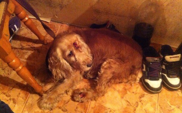 spanielНа сторінці групи “Ноїв ковчег” дівчина написала про те, що знайшла біля Катедри собаку – спаніеля-дівчину, якій більше 10 років.  Та мала шкіряний ошийник з круглими заклепками повздовж. Проте найбільший шок викликали самі фото собаки – посеред лоба чітко видно незрозумілий слід!
