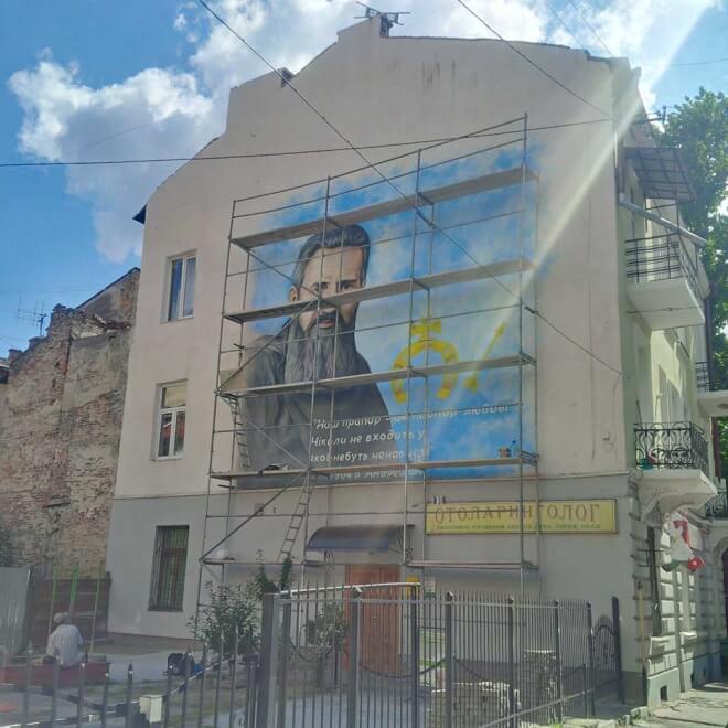 У Тернополі домальовують на стіні у центральній частині Тернополя велике зображення митрополита Андрея Шептицького. Цей мурал повинні були намалювати ще наприкінці 2015 року.