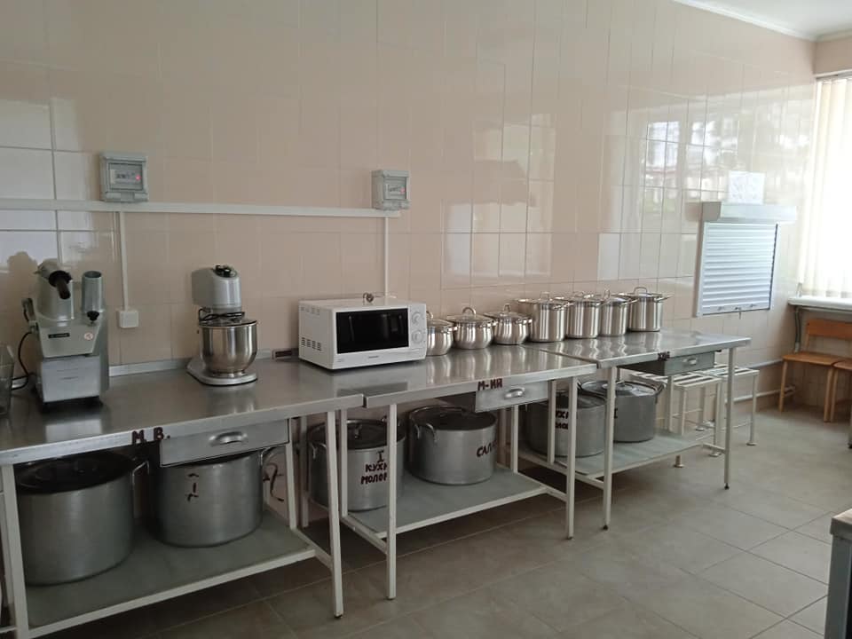 Відповідно до проєкту модернізації харчоблоку, тут з’явилася електрична 6-ти камфорна плита з духовою шафою, посудомийна машина зі столами загрузки та вигрузки, електрична сковорода та електром’ясорубка, картоплечистка, овочерізка, міксер, трьохсекційна шафа жарочна, холодильна шафа, вісім виробних столів з нержавіючої сталі різних розмірів на одну та чотири полиці, а також мийки для посуду одно- та двосекційні.