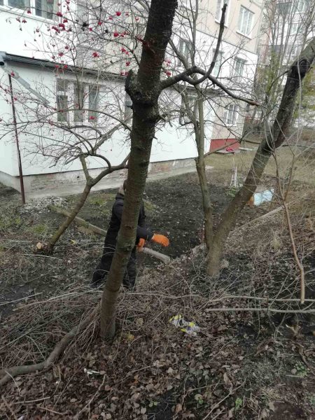 У місті проводяться роботи по санітарній підрізці дерев на прибудинкових територіях, які обслуговуються приватними підприємствами.