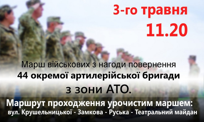 У Тернополі, 3 травня, відбудеться грандіозний марш військових з нагоди повернення 44-ої окремої артилерійської бригади із зони АТО.