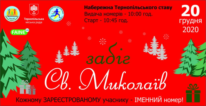 20 грудня на набережній Тернопільського ставу відбудеться костюмований новорічний забіг Св. Миколаїв.