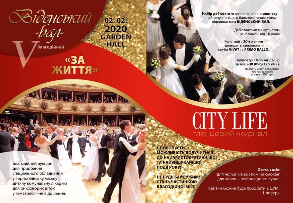 Запрошуємо тернополян поринути в незабутню атмосферу справжньої віденської казки, а також взяти участь у благодійному аукціоні разом з організаторами та учасниками П’ятого Віденського балу.