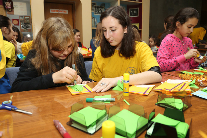 Під час акції волонтери разом з дітьми робили новорічні листівки, ялинкові прикраси, проводили майстер-класи.