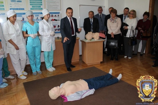 Завідувач кафедри медицини катастроф і військової медицини, професор Арсен Гудима зауважив, що центр симуляційного навчання у ТДМУ спершу почав працювати як міжкафедральний навчально-тренінговий центр ще минулого року. Відтак у викладачів є вже рік досвіду в організації і проведенні симуляційного навчання. «Потрібно відзначити, що цю форму навчального процесу наш університет впроваджує давно і лідером в цьому є кафедра медицини катастроф і військової медицини, оскільки підготовка офіцерів запасу медичної служби в тренувальному центрі навчально-оздоровчого комплексу «Червона калина» відбувається у формі симуляційного навчання. Другий крок полягав у створенні віртуальної клініки в навчально-науковому інституті медсестринства. І вже у 2015-2016 навчальному році відбулося становлення центру симуляційного навчання як окремого підрозділу університету. Тут проводять свої заняття викладачі клінічних кафедр. В перспективі є створення кафедри симуляційного навчання», – додав Арсен Арсенович.