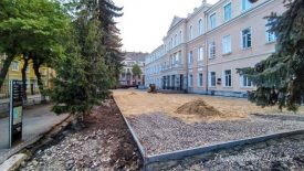 В рамках “Громадського бюджету” проходить облаштування «Шкільного дворика імені святої Ядвіги» перед Тернопільською спеціалізованою школою №5.