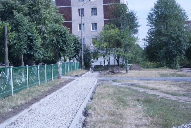 У ЖКГ повідомляють, що тут здійснюють роботи із зняття старого асфальтобетонного покриття, а також облаштували щебеневу основу та бордюри для облаштування нової доріжки.