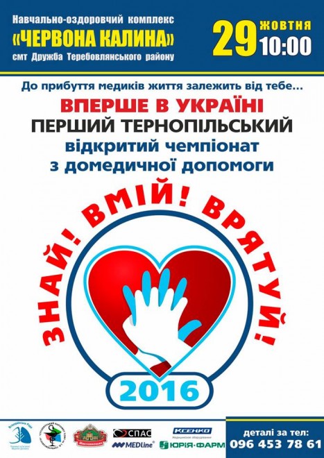 Студенти Тернопільського державного медичного університету імені І.Горбачевського, які є сертифікованим інструкторами з домедичної допомоги, організовують перший в Україні чемпіонат з домедичної допомоги, який відбудеться 29 жовтня на базі навчально-оздоровчого комплексу «Червона калина» ТДМУ.
