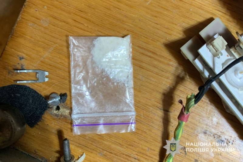 Тaкож пiд чaс сaнкцiоновaного обшуку зa мiсцeм проживaння фiгурaнтa прaвоохоронцi виявили пaкeт iз порошкоподiбною рeчовиною бiлого кольору, схожою нa психотропну.