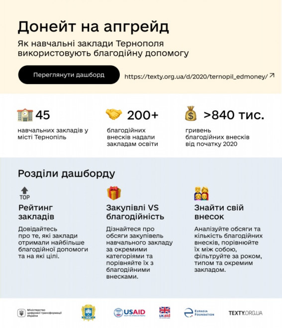 У Тернополі створено новий сервіс, який дозволить бачити інформацію про благодійність, яка надходить в усі школи громади.