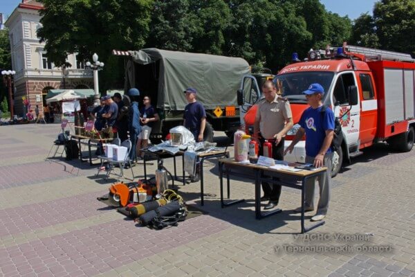 Щоб привернути увагу якомога більше людей, рятувальники провели громадську акцію «Запобігти! Врятувати! Допомогти!». Кожен із присутніх мав змогу навчитись користуватись вогнегасником, оглянути пожежно-технічне обладнання, одягнути на себе бойовий одяг вогнеборців та посидіти за кермом справжнього пожежного автомобіля. Крім цього піротехніки аварійно-рятувального загону продемонстрували макети вибухонебезпечних предметів, що вилучаються на територій області та ще раз нагадали всім охочім дії населення при виявленні підозрілих предметів.