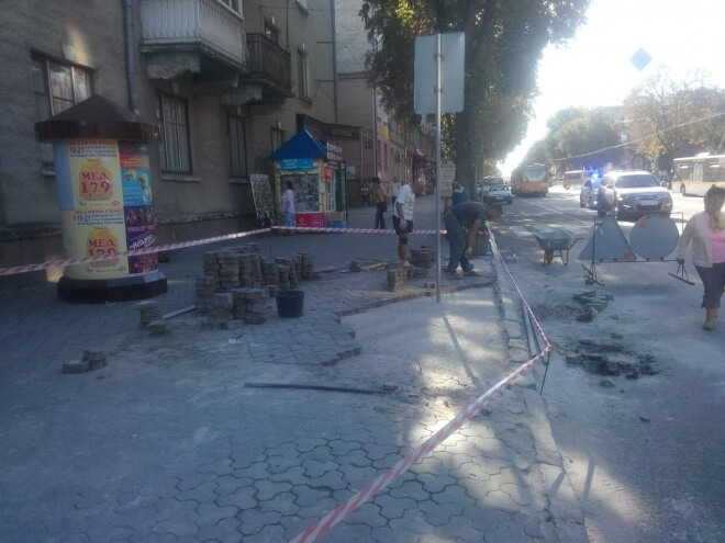 У центрі Тернополя бруківку вже “латають” (фотофакт)
