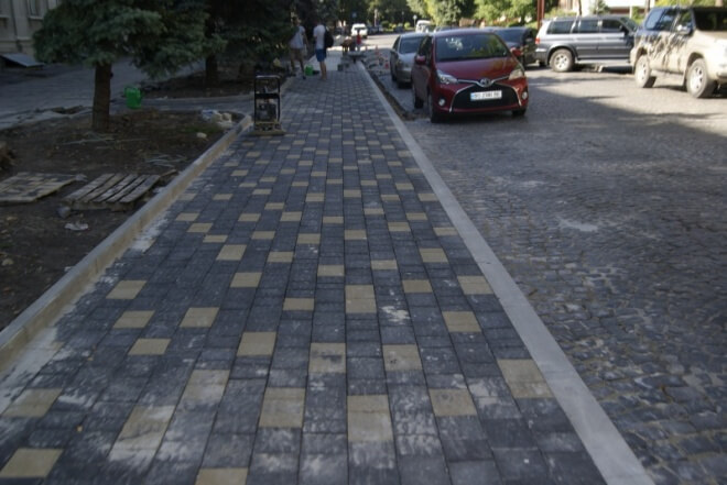 Зараз роботи завершуються безпосередньо поблизу Тернопільського академічного обласного українського драматичного театру імені Т. Г. Шевченка. Тут демонтували бордюри та старе покриття для подальшого влаштування щебеневої основи тротуару та мощення фігурними елементами мощення.