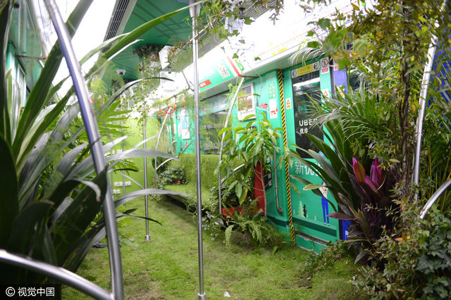 У китайському місті Ханчжоу один із вагонів в метро перетворили на справжній ліс з метою пропаганди екологічно чистого транспорту, повідомляє видання Life.